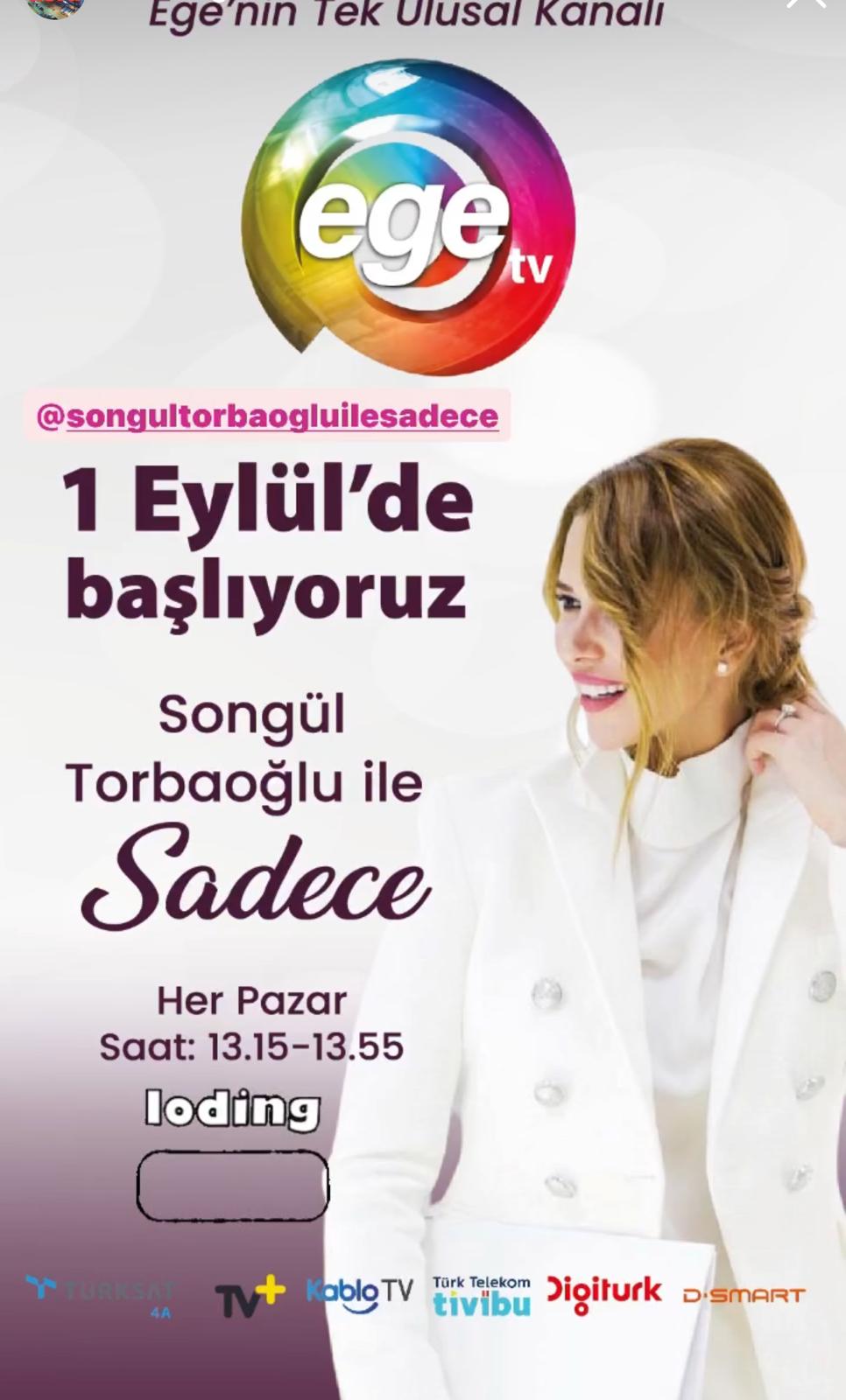 Ege TV, gündüz kuşağında izleyicilerine yeni bir soluk getirecek. Girişimci ve başarılı iş kadını Songül Torbaoğlu’nun sunuculuğunda ekranlara gelecek olan “Songül Torbaoğlu ile Sadece”, kadınların ilgisini çekecek yaşam tarzı, sağlık, güzellik, estetik ve moda gibi pek çok konuyu derinlemesine inceleyecek. Her Pazar günü yayınlanacak olan bu özel program, izleyicilere daha kaliteli bir yaşam sunmayı hedefleyen…