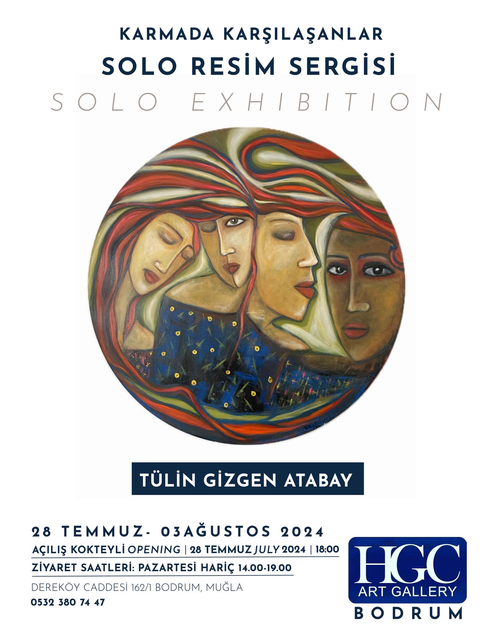 Bodrum Gümüşlük’te yer alan HGC Art Gallery, sanatseverleri Tülin Gizgen Atabay’ın “Karma’da Karşılaşanlar” adlı solo resim sergisine davet ediyor. Sanatçının dışavurumcu figüratif tarzda oluşturduğu eserlerinin yer alacağı bu özel sergi, 28 Temmuz saat 18.00’da açılış kokteyli ile sanatseverlerin beğenisine sunulacak.